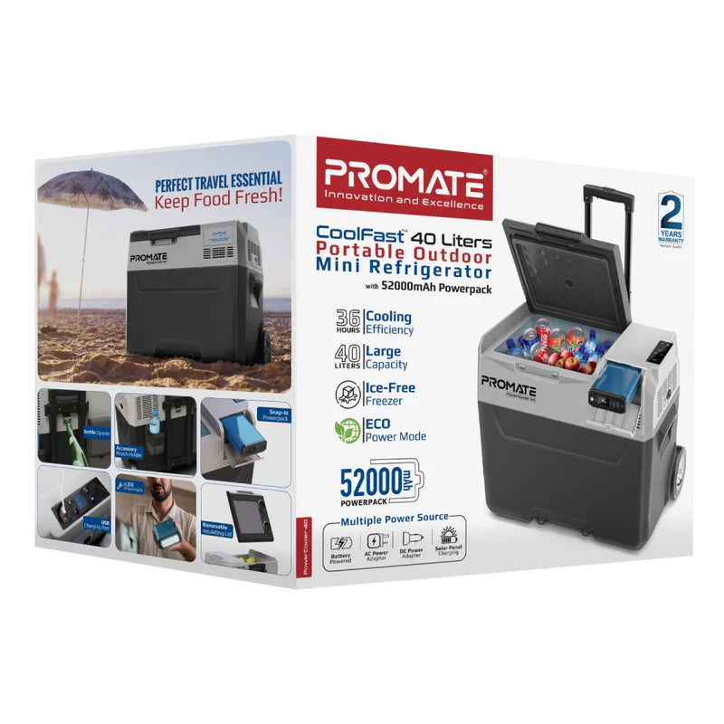 PowerCooler-40 features the latest technology designed with more versatility and a battery pack that also functions as a removable 52000mAh power bank so you can charge your devices on the go. With a large capacity of 40 liters, PowerCooler-40 is perfect for long road trips, camping, or even other events.
