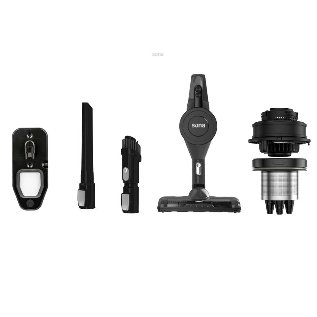 Keep your home spotless with the Sona 250W Cordless Stick Vacuum, designed for effortless cleaning with powerful suction and complete freedom from cables. Ideal for daily cleaning, hard floors, carpets, furniture, stairs, and even your car.