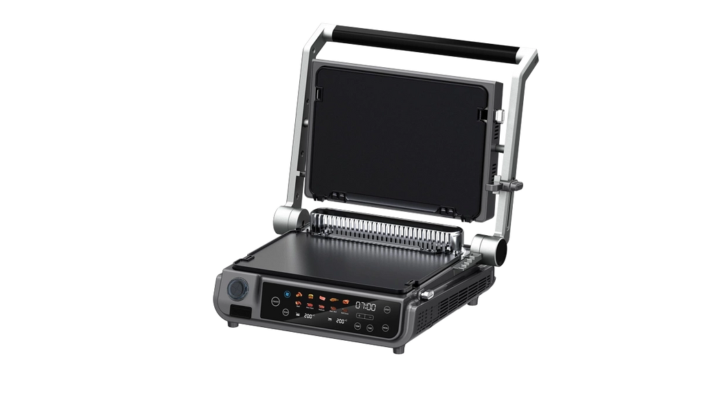 The 180° flat opening doubles the cooking surface, making it ideal for family meals. The digital touchscreen display provides precise temperature and time control for consistent cooking.