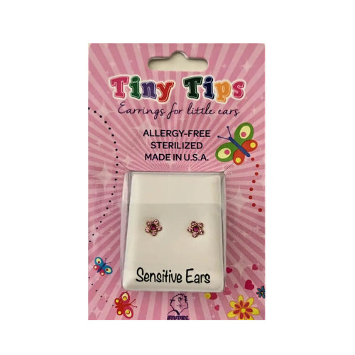 Give your child a cute and safe look with Studex Tiny Tips Fuchsia Flower Earrings 6023.