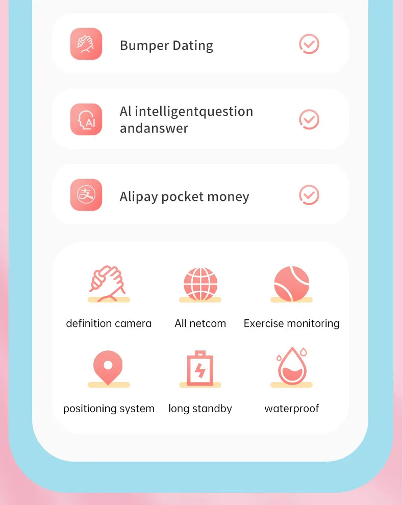 With its 1.69-inch full-touch IPS display (240×280), kids can enjoy an easy-to-use, colorful interface.